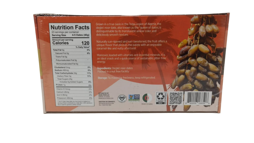 DEGLET NOOR DATES 32Oz (2LB) 12X907G UPC 860006168506 Nutrition Facts. SoLEIL . PREMIUM AlGERLAN . ON BRAND