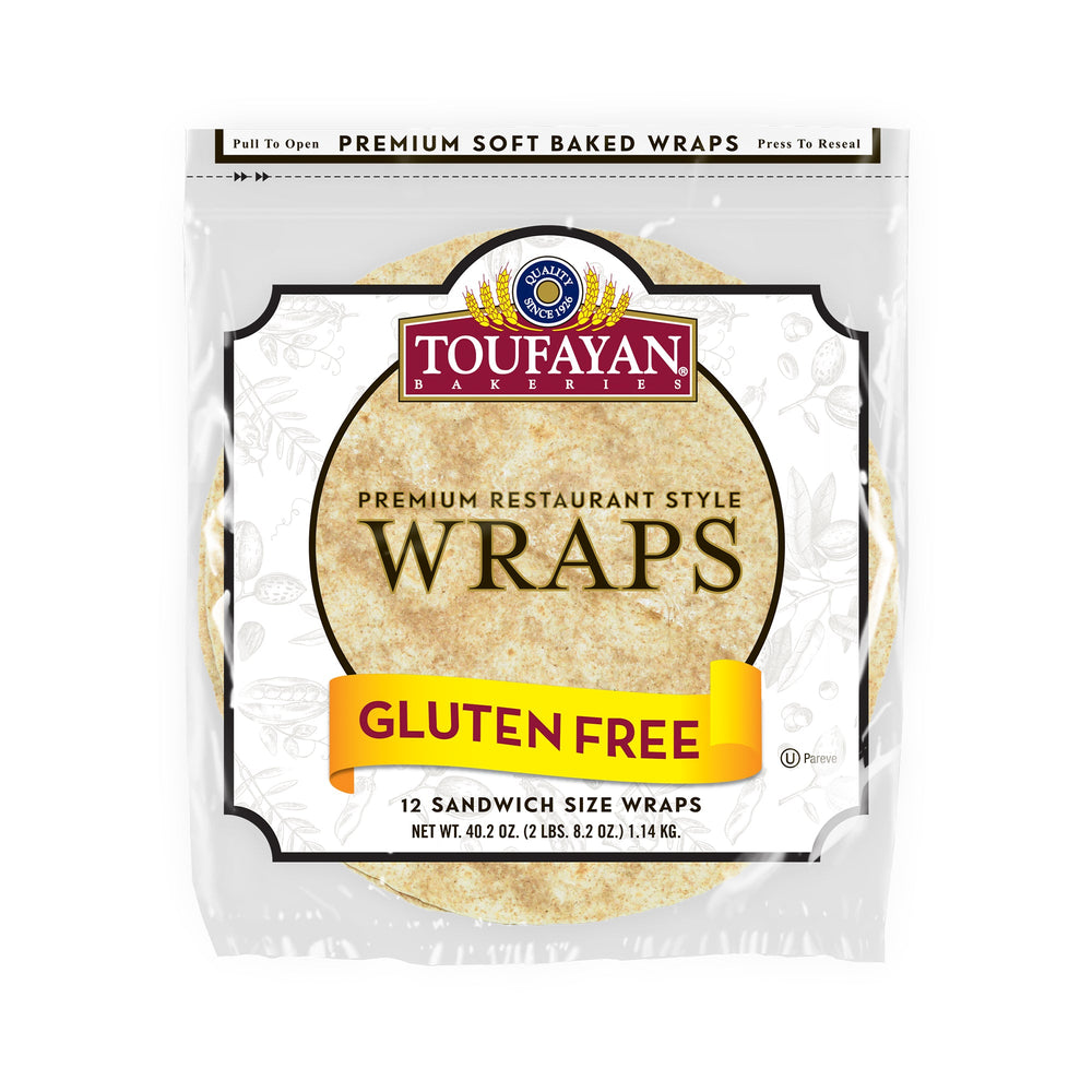 Experience the exceptional quality of Toufayan Bakeries Premium Restaurant Style Gluten Free Wraps. Crafted with care since 1926, these wraps bring the authentic taste and texture of your favorite restaurant right to your home. Each pack contains 12 generously sized sandwich wraps, weighing a total of 40.2 oz (1.14 KG), perfect for feeding the whole family or for meal prepping throughout the week. Our wraps are certified Gluten Free, making them an ideal choice for individuals with gluten sensitivities or those following a gluten-free diet, without compromising on flavor or pliability. They are soft, delightfully pliable, and baked to perfection, ensuring they won't crack or break when rolled, whether you're making a hearty lunch, a light snack, or creative appetizers. Elevate your culinary creations with these versatile wraps – from classic deli sandwiches and vibrant veggie wraps to delicious quesadillas and healthy pinwheels. Toufayan Bakeries commitment to quality means you get a consistently delicious product every time. Enjoy the freedom to create endless delicious and allergen-friendly meals with ease!